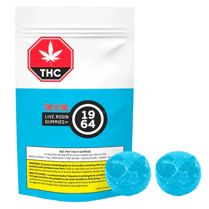 Introducing our new RKT POP THC:THC-V Gummies, crafted with premium live rosin and designed to elevate your experience. Each pack features 10mg of THC alongside 10mg of THC-V, delivering a balanced blend of cannabinoids. Known for its uplifting, and energizing qualities THC-V adds a refreshing twist to your cannabis journey.
