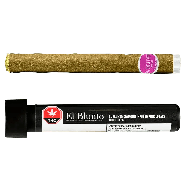 The Pink Legacy is one of the rarest and fanciest diamonds. We hand infused each El Blunto with THCa diamonds and then diamond dust each pre-roll. Contains diamond infused full flower buds, broken down by hand, wrapped in tobacco-free natural hemp and packaged in a resealable glass tube.