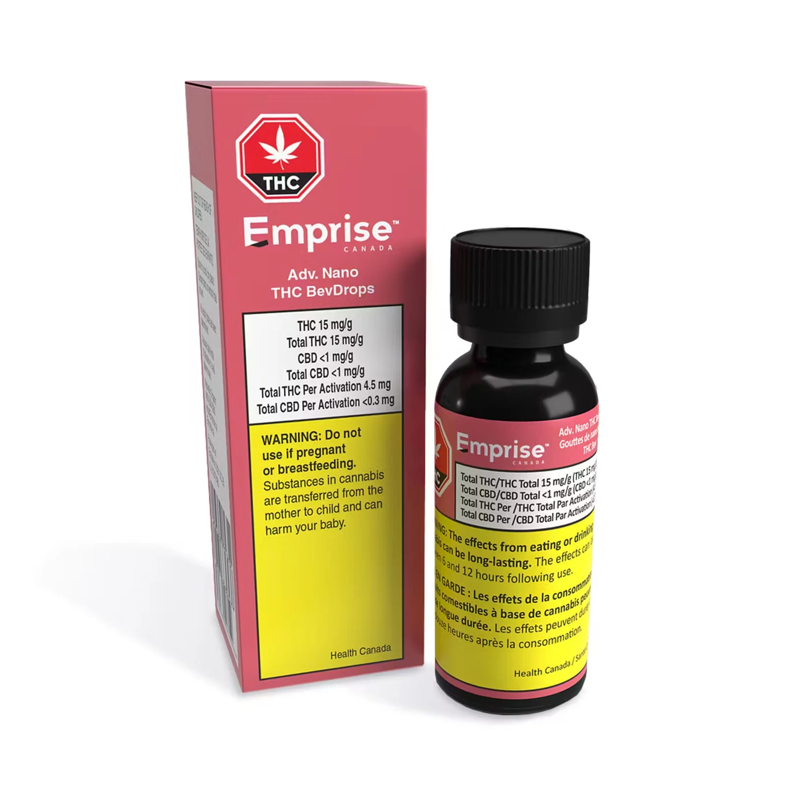 Emprise's Adv. Nano THC BevDrops deliver a 15 mg/g THC-dominant product in water-soluble format. The product is formulated with Full Spectrum THC Cannabis Extract that is Water-soluble for rapid onset in as little as 10-15 minutes.