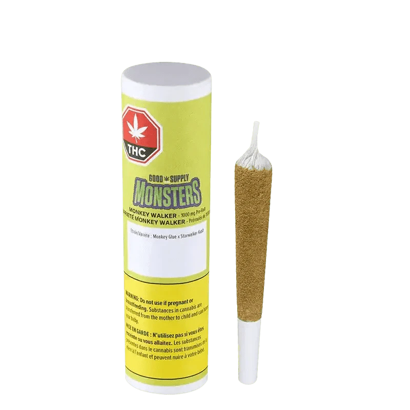 Introducing the Good Supply Monsters. Monkey Walker came to life working in the lab late one night - combining two iconic indica strains, Monkey Butter and Starwalker Kush into an enormous 2.3g pre-roll that packs a sky-high THC content of 1,000mg in each pre-roll.
