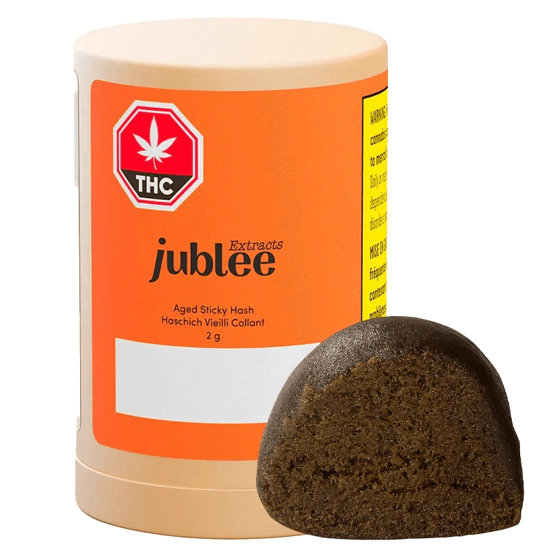 Explore innovation with Jublee Aged Sticky Hash! This Afghan-style hash is crafted using premium kief and in-house full-spectrum hash oil, delivering an authentic, old-school experience with a modern twist. With 36-44% THC, it packs a potent punch while maintaining a sticky, malleable texture, perfect for rolling joints or enhancing your bowl. Each batch is aged for a minimum of 3 months, allowing the flavours and cannabinoids to develop fully for a rich, smooth smoke. The captivating aroma transports you back to the golden era of hash, evoking deep nostalgia with every inhale. Aged Sticky Hash offers users a unique, cannabinoid-rich high. Whether you're a connoisseur or a curious enthusiast, this artisanal hashish guarantees an elevated and memorable experience.