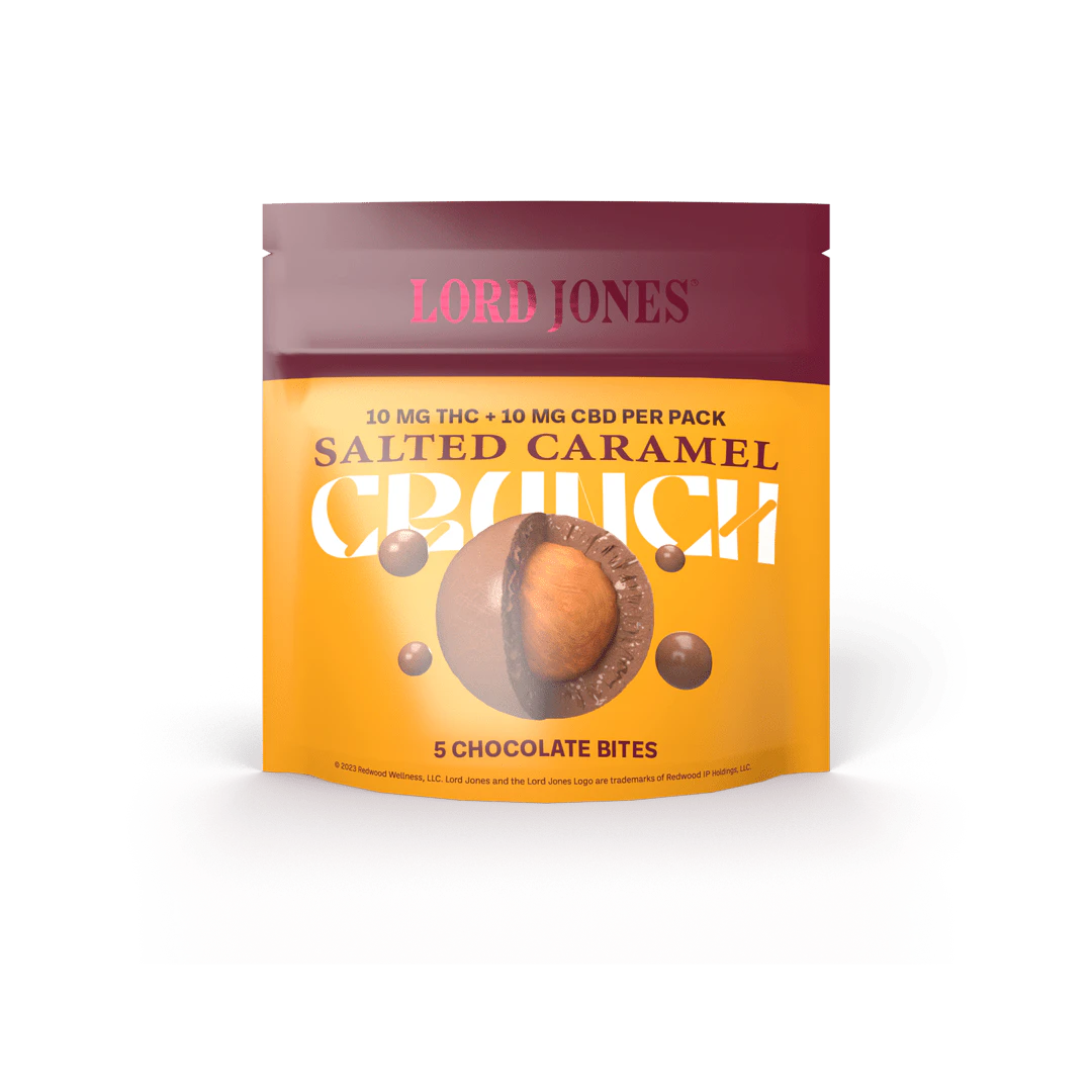 Enjoy a multi-dimensional cannabis experience with three delicious layers of creamy milk chocolate, sweet and salty crunch, and a smooth caramel centre. Lord Jones Salted Caramel Crunch 1:1 CBD | THC Chocolate Fusions take you above and beyond to a higher level of chocolatey goodness. These hand-crafted and artfully created chocolates deliver an extraordinary moment of relaxing cannabis bliss. Experience 5 pieces per pack with 2mg of THC and 2 mg CBD per piece & 10mg THC total and 10 mg CBD total per pack.