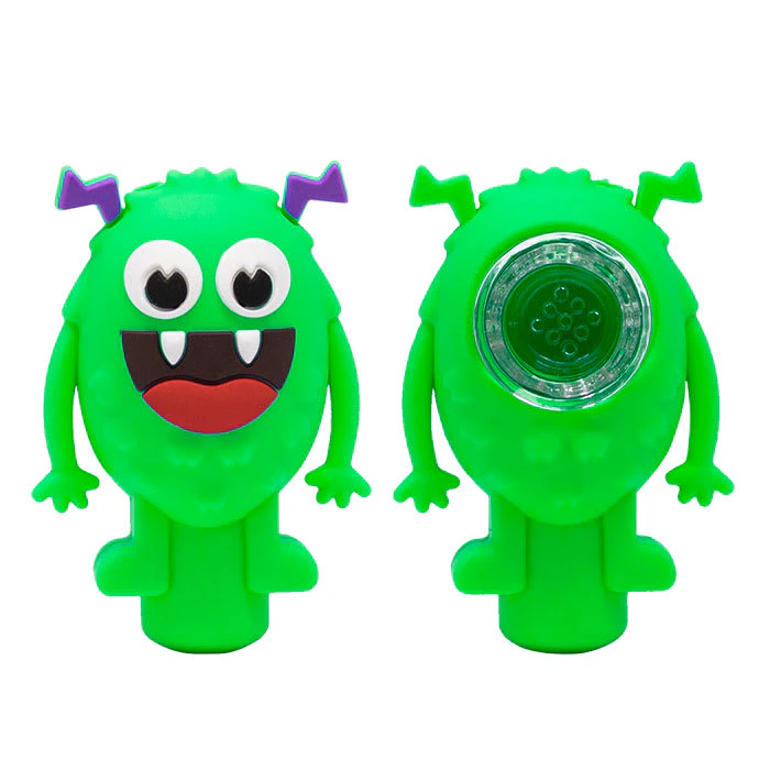Green Cute Baby Monster 3 Inches Silicone Pipe