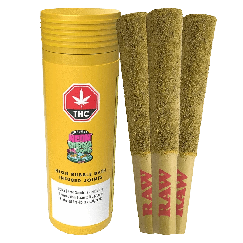 Fresh out the shower, ready to devourer, night life - by your side, two of the best new flowers! Just like that stare-down moment you have with yourself in the mirror just before you head out. Body all glowing and that squeaky-clean, fresh smell lingering in the air. Like a splash of cologne, in comes Neon Bubble Bath Infused Prerolls from Nugz. The nightlife calls when freshness meets citrus in this Neon Sunshine and Bubble Up Infused Preroll.
