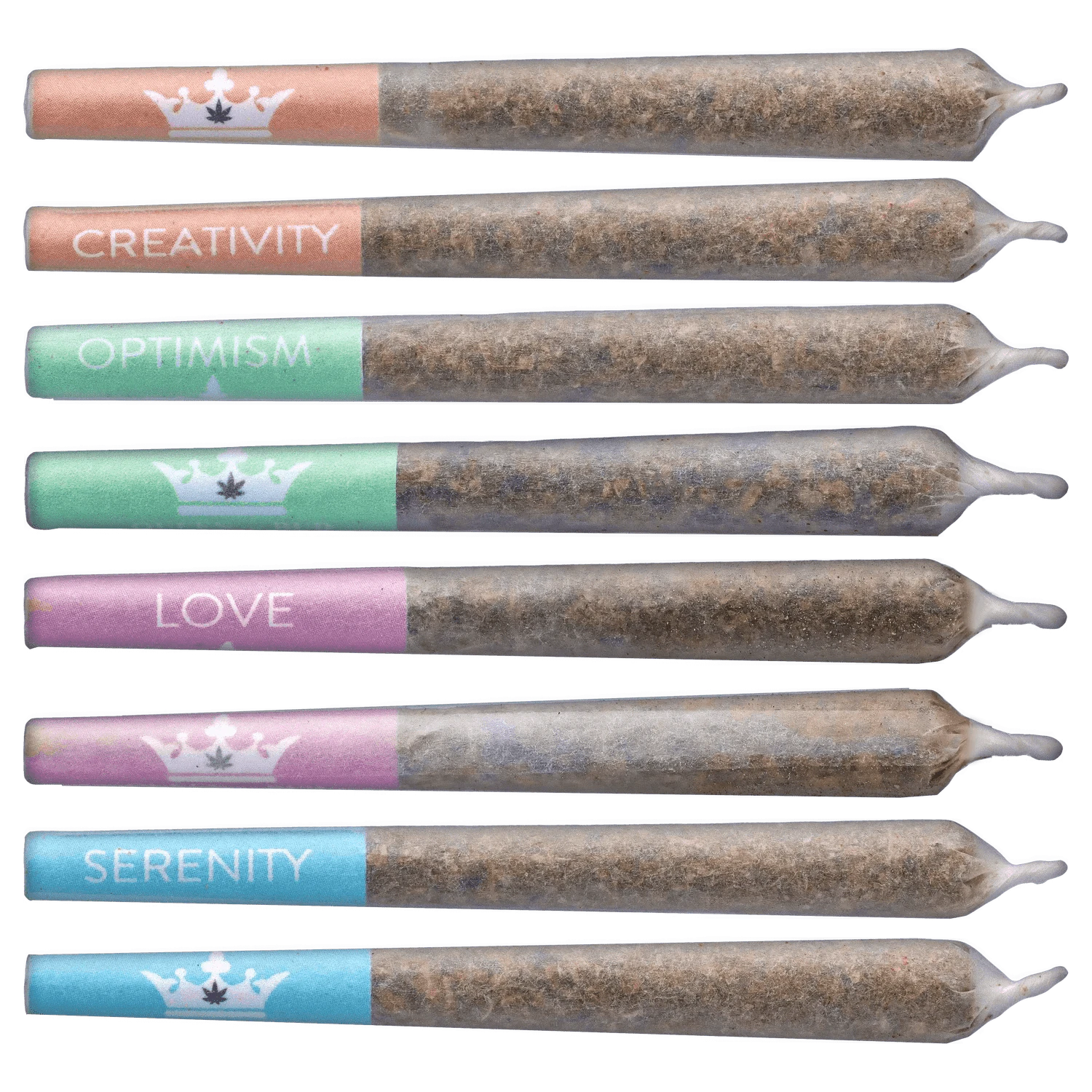 Discover the magic of our Crystal Variety Pack Pre-rolls, This collection features three unique experiences, each inspired by a different crystal and infused with 100% plant-derived botanical terpenes. Embrace the power of love, serenity, and optimism with our premium high-THC cultivars.