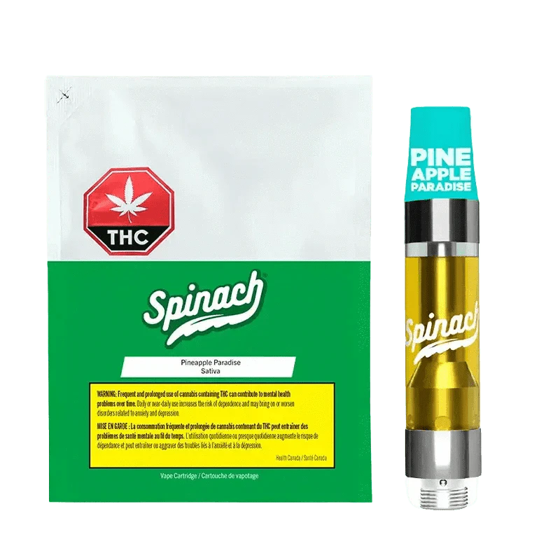 Inspired by our Pineapple Paradise cultivar, the first puff produces lush and sweet pineapple aromas that fill the air. Crossing Pre-98 Bubba Kush and Sour Diesel is like arriving at your own tropical vacation. Our proprietary cold-filtered extract, distilled four times through sub-zero temperatures ensures flavour and consistency. And nothing says paradise like the rare and ultra-elusive beta-ocimene, putting this Spinach exclusive on an island all its own. Compatible with 510 thread devices. Device not included.