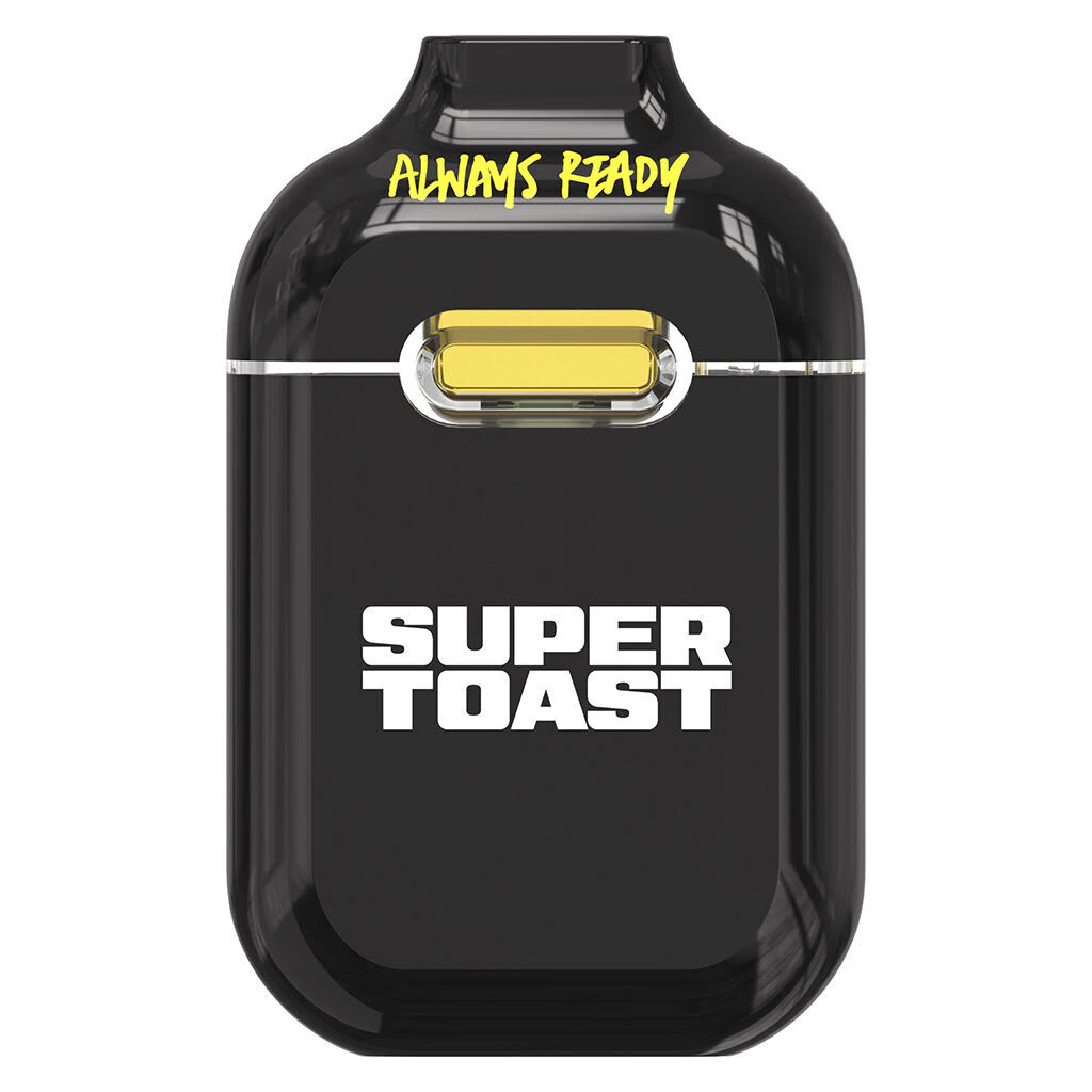 This All-in-One vape is packed with juicy flavour and infused with liquid diamonds. But... WTF?! What's the Flavour?! Here's a hint: sweet like candy, juicy like jelly, fruity, floral...and kinda bougie. Think you know it? Hit us up on social @supertoastworld with your guess. Super Toast grab n' go rechargeable vapes are always ready, no battery required. Our custom vape design is the stuff of ergonomic dreams, with the perfect palm-feel and super comfortable mouthpiece for long hauls and big fluffy clouds. Super Toast. Always Ready.
