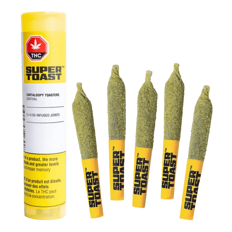 Crank up the toast level with Toasters. Super flavourful and potent kief-coated joints infused with THC distillate and juicy swirls of sweet creamy cantaloupe. Super Toast. Always Ready.