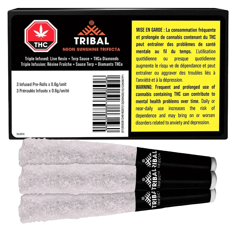 Tribal's Trifecta's are something truly special, for when you want to explore all that a flower has to offer. Whole flower, ground and infused with strain-matching live resin and terp sauce, then rolled in hemp paper and coated in THCa diamonds. Served in a pack of three, infused with three types of concentrates, and always over 35% THC. Tribal Trifrcta's' are your gateway to the lost lands!
