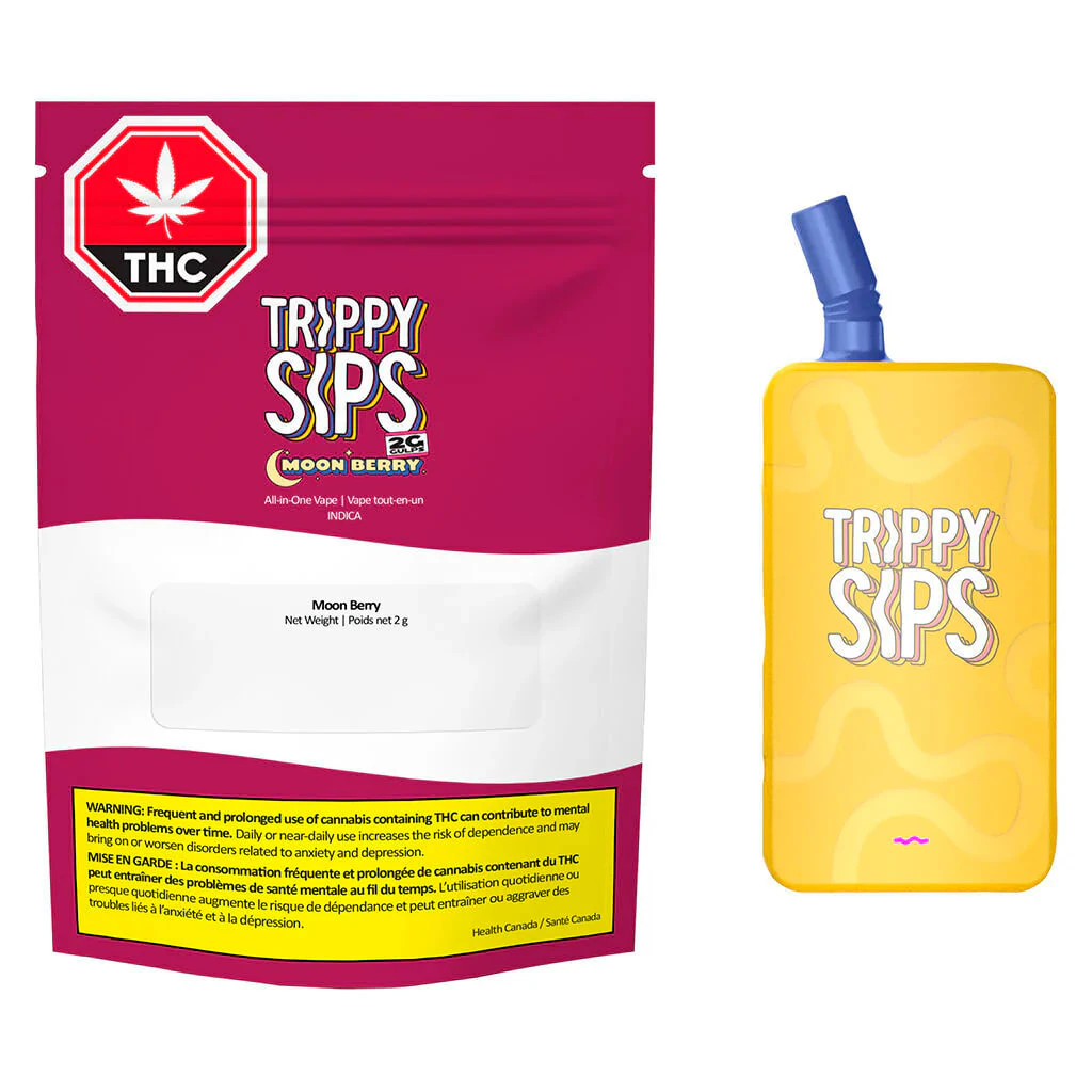 Light and refreshing watermelon mixed with sweet blueberries make up the perfect after hours flavour in Trippy Sips MoonBerry. This big 2g all-in-one vape blends CBN, THC and CBD cannabinoids with a liquid diamonds blend for lights out potency and flavour, in a USB-C rechargeable, ready-to-go device.