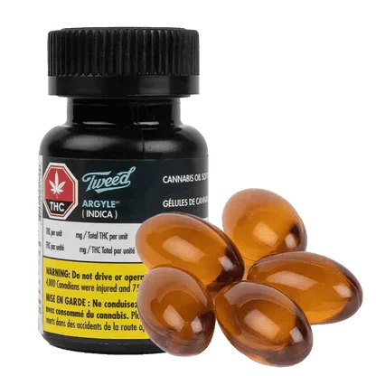 An indica-dominant strain with a balanced THC-to-CBD ratio, Argyle's clove-like notes are layered with earthy hints from myrcene that add complexity and depth to these softgels.